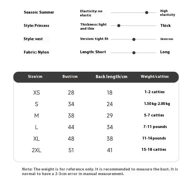 Product information: Color: blue, white Size: XS size chest 28 back 18 (0.50kg-1.00kg,S size chest 34 back 24 (1.50kg-2.00kg,M size chest 38 back 29 (2.50kg-3.50kg,L size chest 44 back 34 (3.50kg-5.50kg,XL size chest 48 back 38 (5.50kg-7.00kg,2XL size chest 51 back 41 (7.50 kg-9.00kg Applicable gender: general Material: Nylon Category: pet clothing